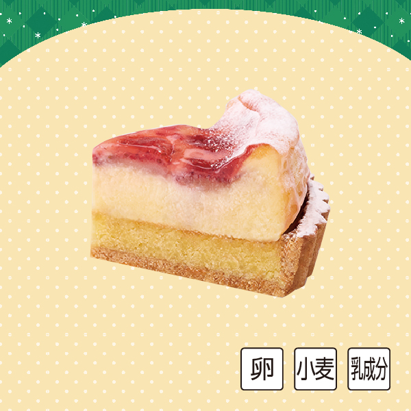 生クリーム・卵・チーズ・小麦粉の生地に、いちご・フランボワーズを入れ焼き上げたタルトです。