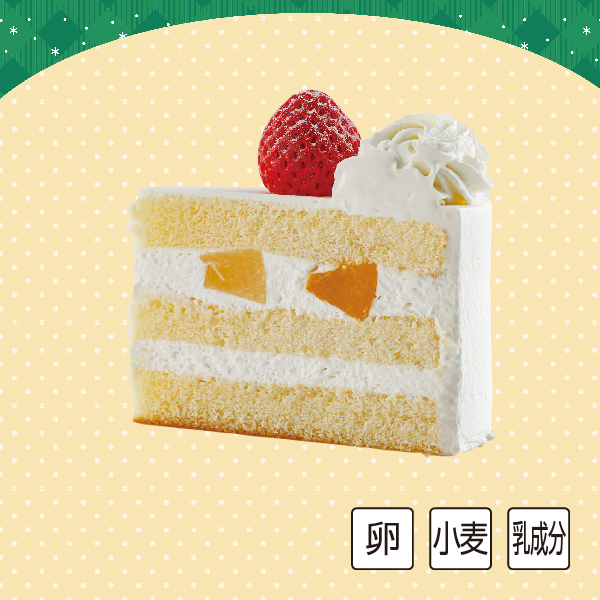「ソフトなスポンジにオリジナルブレンドの生クリームと洋梨・黄桃をサンドしました。