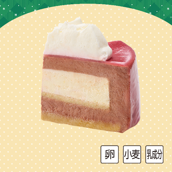 フランボアーズ風味のチョコレートムースの中にチーズのムースを閉じ込めた、クリスマスデザインのチョコレートケーキです。