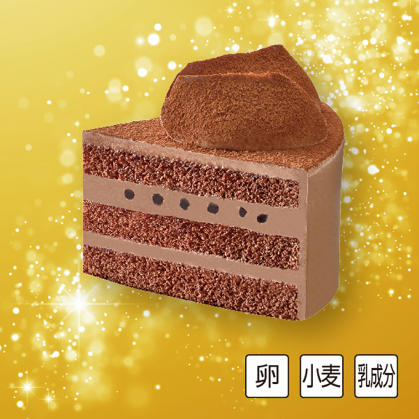 チョコチップとチョコクリームをサンドし、チョコをトッピングしたチョコづくしのクリスマスケーキです。