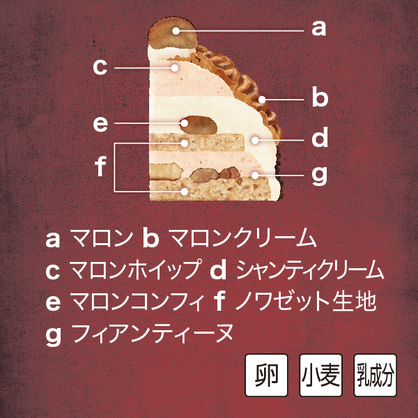 イタリア産のマロン原料をふんだんに使用し、高級感のあるノワゼット生地に濃厚なマロンクリームを合わせたモンブランです。