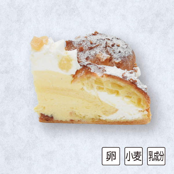 パイとリング状に焼いたシュー生地に、生クリーム入りクリームとカスタードを挟み込んだフランス菓子定番ケーキをクリスマス仕様にしました。