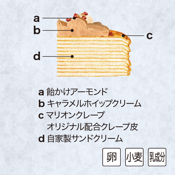 オリジナルの粉を使用したふんわり軽めの皮を何層にも重ねたミルククレープです。