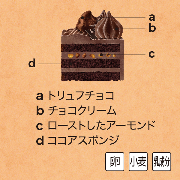 さっぱりとしたチョコクリームとアーモンドをココアスポンジでサンドした糖質を抑えたケーキ