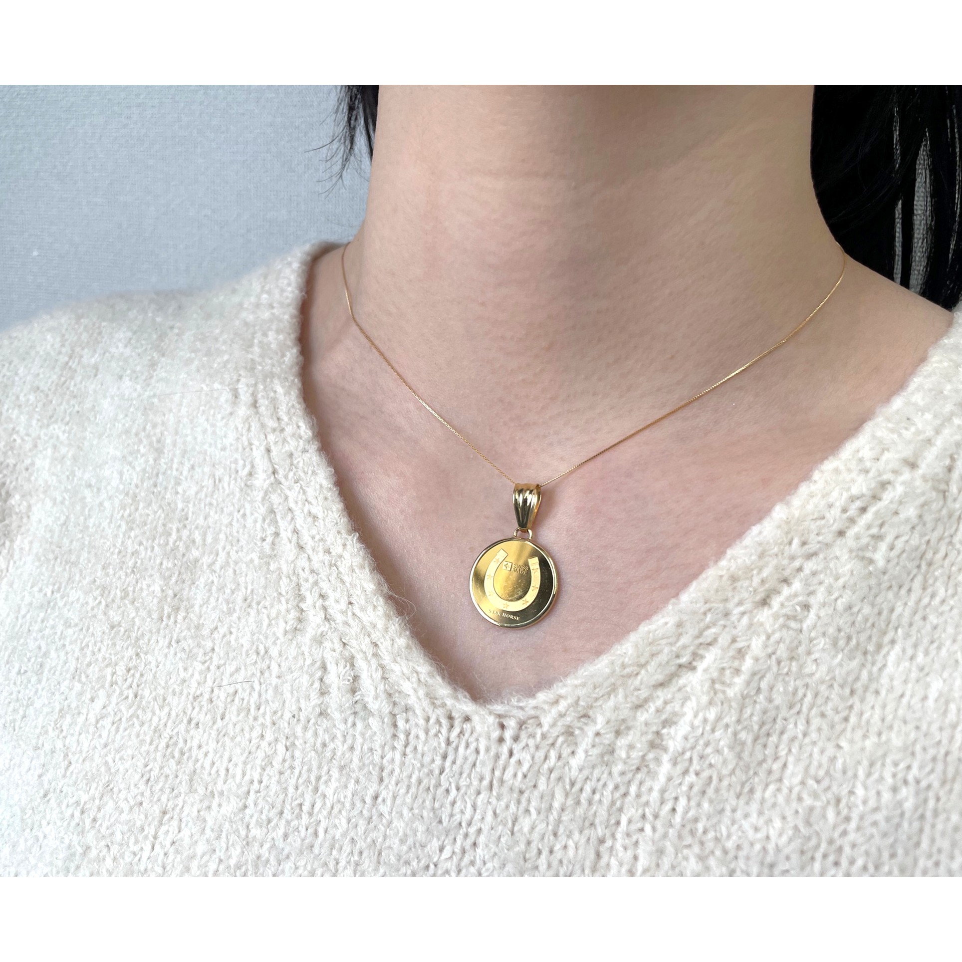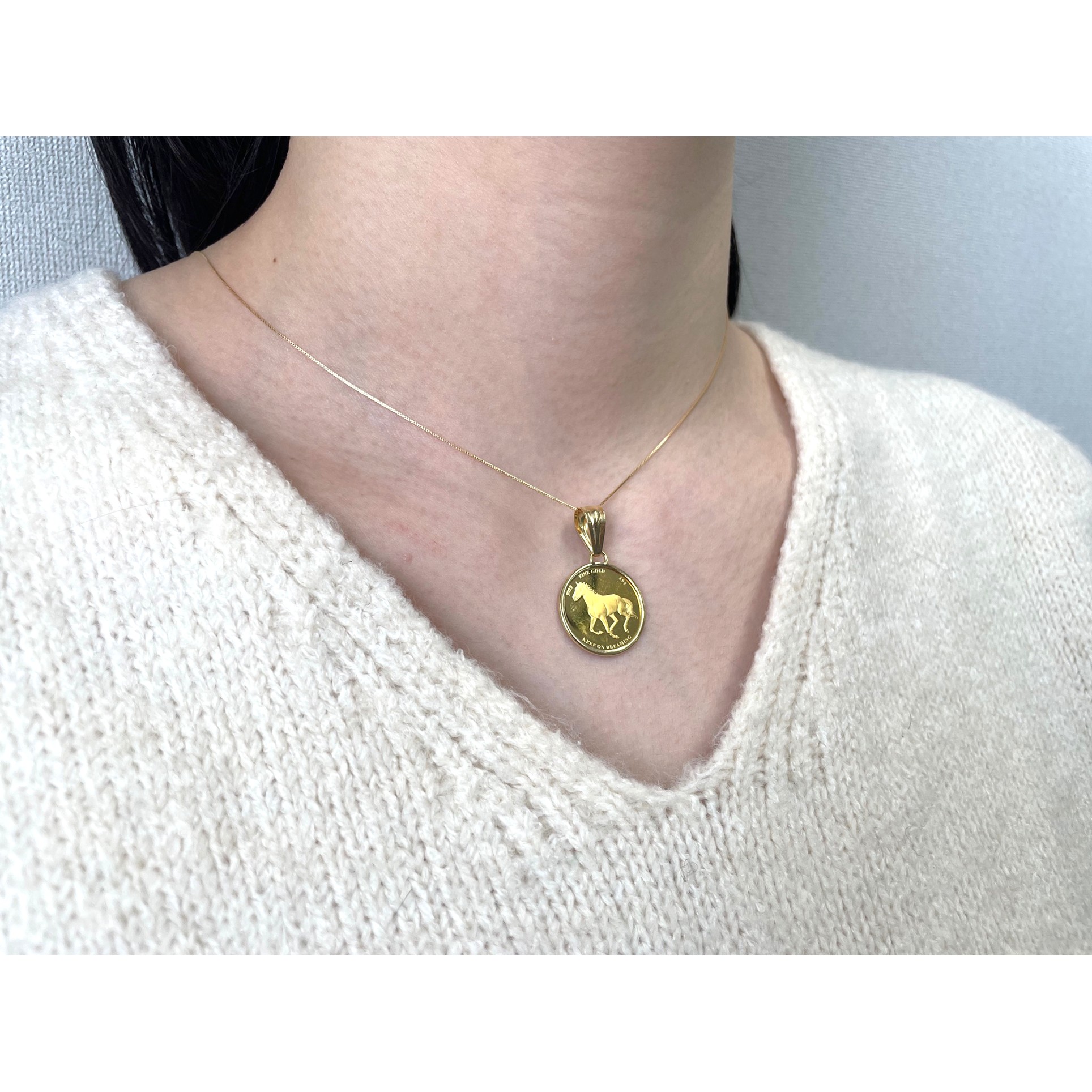 24金ホース馬蹄デザイン約2.5gコイン・18金チェーン枠ネックレス TVH13450HD