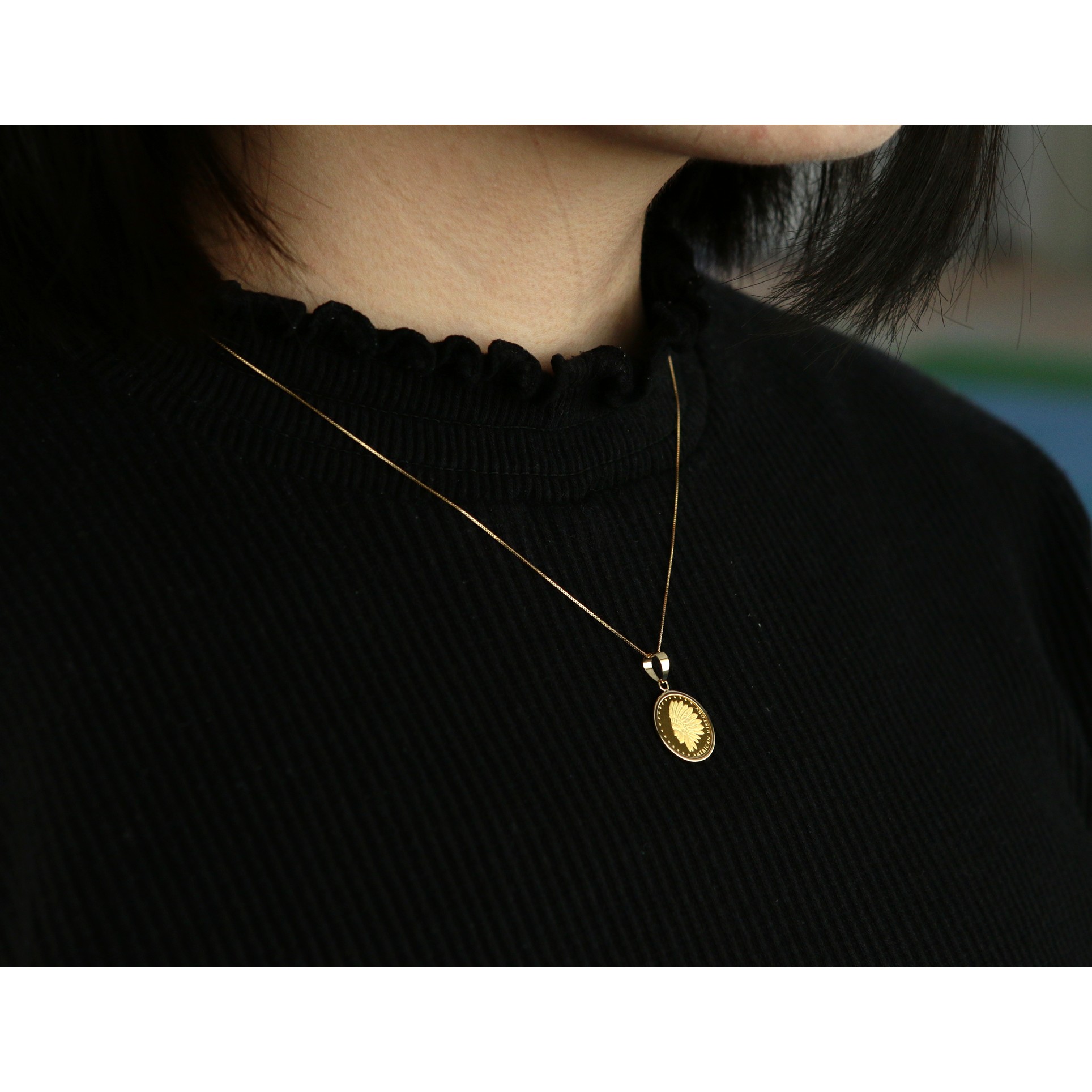 24金アメリカンイーグル1/25オンスコイン・18金チェーン枠ネックレス D0266450K9