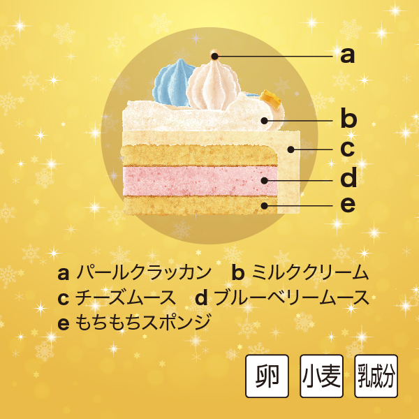 雲をイメージしたシナモロールカラーのクリームを絞ったクリスマスケーキです。オリジナルステッカー付。