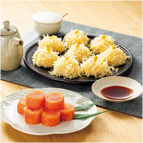 福さ屋自慢の「無着色辛子めんたい」と佐賀県呼子萬坊の「いかしゅうまい」をセットにしました。