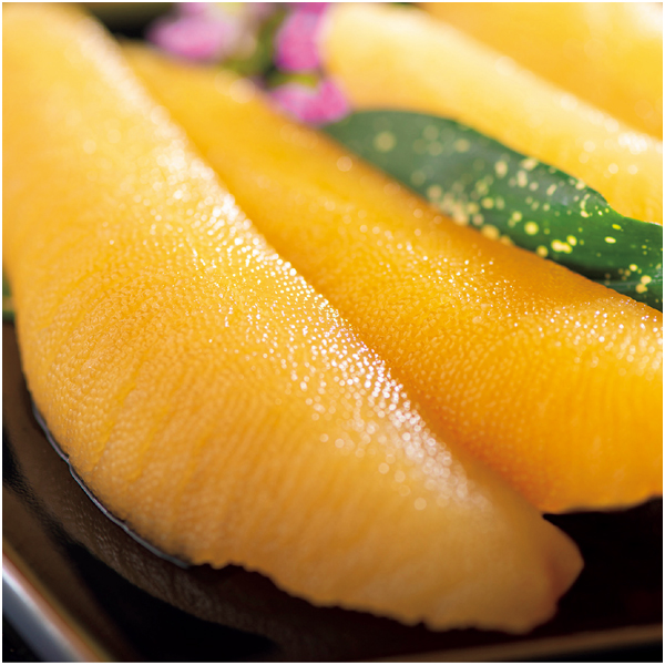 北海道石狩湾産のにしんから取り出した数の子を、昆布風味の醤油ベース調味液にて漬け込みました。従来の塩数の子に比べ、塩抜き・薄皮取りの手間がなく、すぐにお召し上がりいただける、利便性・嗜好性を追求した商品です。使用している卵は、北海道石狩湾産の無漂白物、数の子本来のおいしさとパリパリ感をどうぞ存分にお楽しみください。