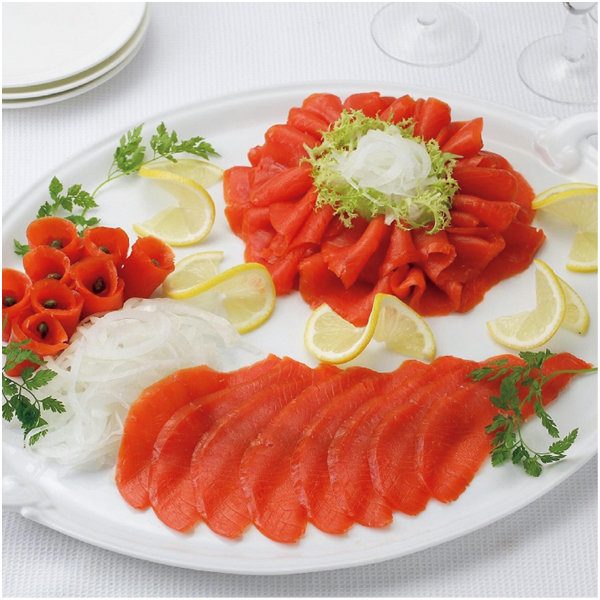 ロシア産天然紅鮭を中村屋独自の製法で仕上げたスモークサーモンのスライスセット。