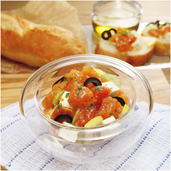 鮭の身をスモークの香りと洋風の味付けに仕上げ、オリーブオイルで和えた、サーモンの洋風生珍味。パンにサンドして、カナッペや野菜サラダの具などによく合う珍味。ご飯にもよく合います。