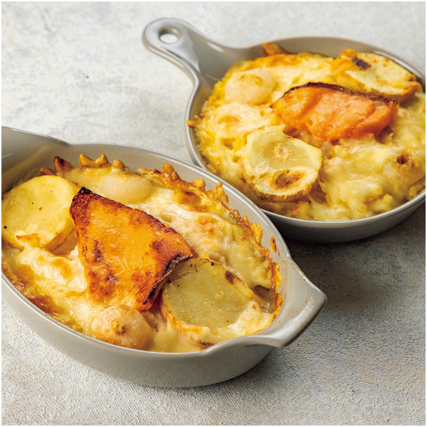 ふくいサーモンをゴロっと使用し、4種のチーズで仕上げたグラタン・ドリアのセットです。レンジやオーブンで簡単に調理できます。