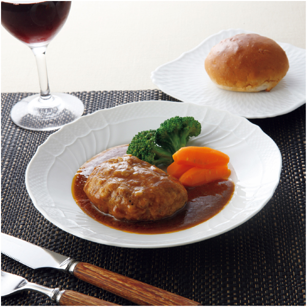 デミグラスソースで煮込んだ松阪牛入りハンバーグと松阪牛と国産牛豚肉が調和したハンバーグのセット。