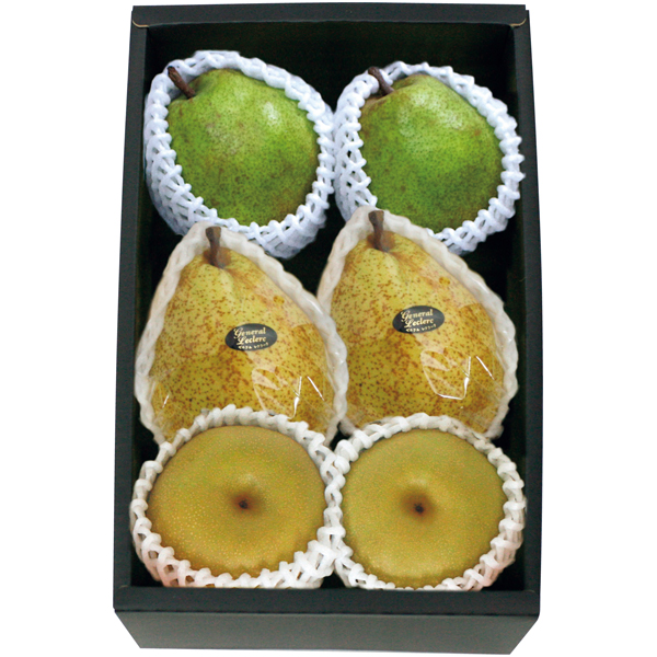 福島県産和梨2個(豊水又はあきづき又は王秋)、山形県産ラ・フランス2個、福島県産ゼネラル・レクラーク2個、各秀品、各1個335g以上、計2kg以上