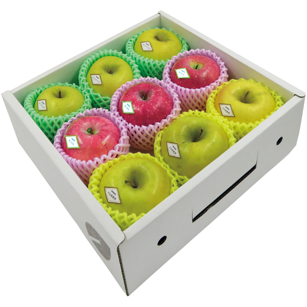 青森県産りんごを3種詰合せました。光センサー選別により糖度14度以上のりんごだけをお届けします。