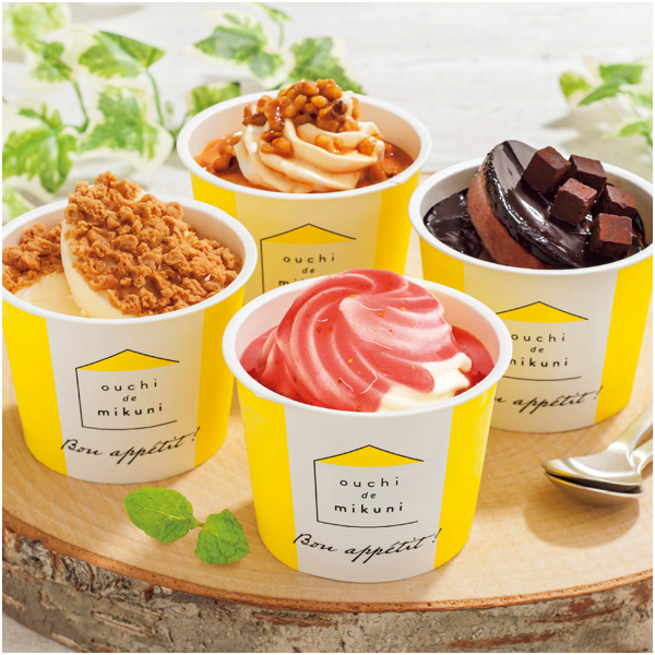 北海道ならではの素材を活かしたアイスをセットに。4種の風味を楽しめます。