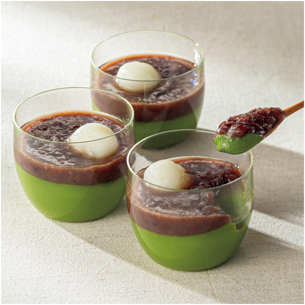 十勝橋本牧場の生乳を使用した抹茶プリンに、十勝産小豆を使用した粒餡と白玉をトッピングしました。