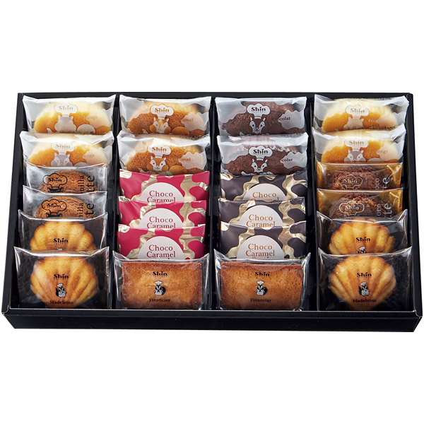 シンマドレーヌ・スフレフロマージュ 各4、チョコキャラメルサンド2種 各3、ガレット2種・シンフィナンシェ・スフレ2種 各2