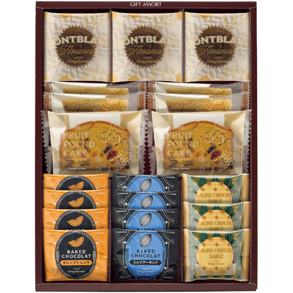 マドレーヌ3種 各4、焼菓子4種 各2、焼きショコラ2種 各4、ショコラサブレ3、モンブランフィナンシェ3、クッキー4