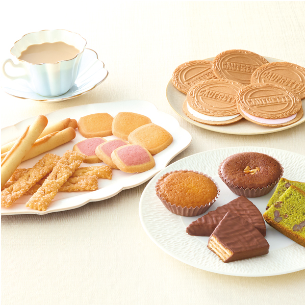 ゴーフレット8、パピヨット4、フィユタージュ5、アソートクッキー6、サピニエール(スイート・苺)各4、お菓子の美術館8