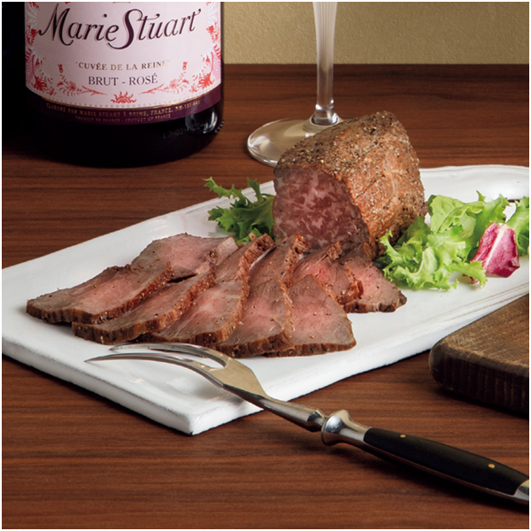 神戸牛の風味をそのままに、中心が薄いピンク色くらいの焼き加減で旨みがたっぷりです。お好みの厚さにスライスしてお召し上がりください。