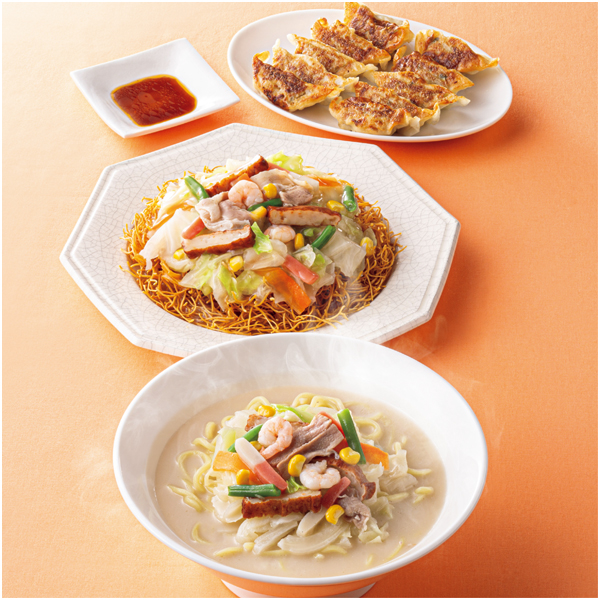 長崎ちゃんぽん305g・長崎皿うどん244g 各2、ぎょうざ200g×3 ※のしはご容赦ください