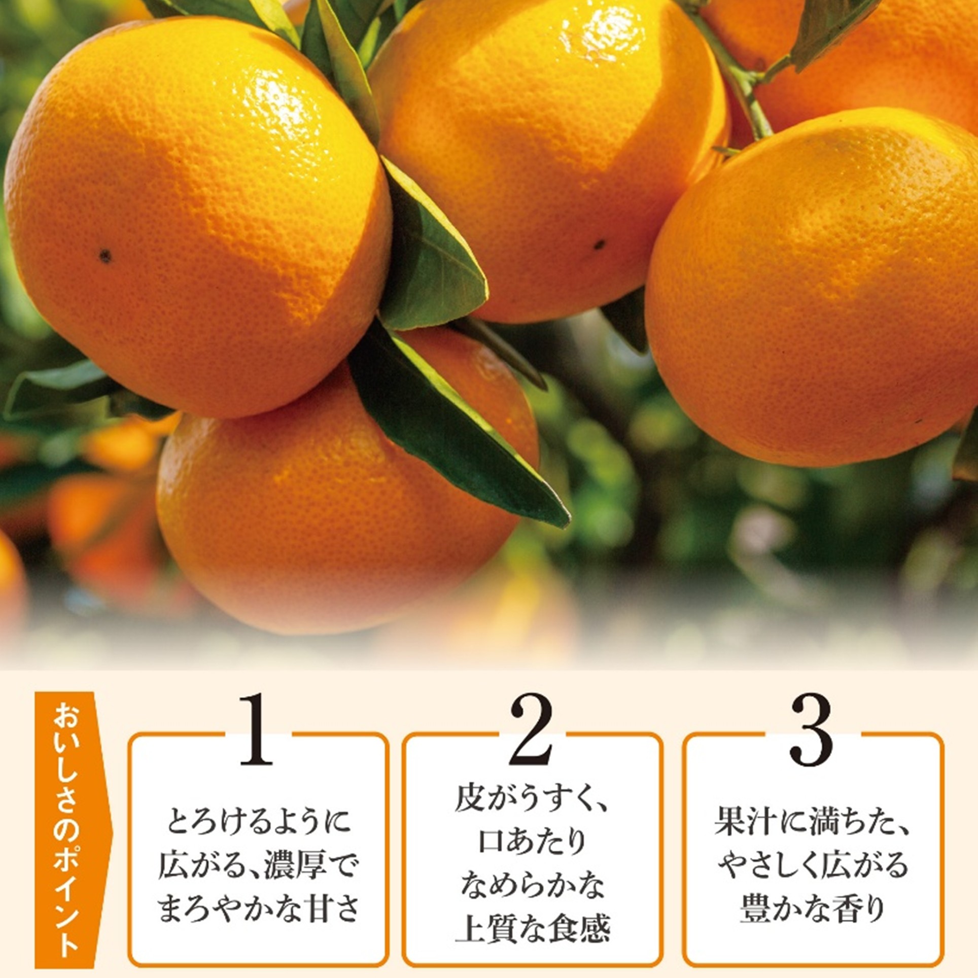 濃厚でジューシーな味わいで、果肉はとろけるように甘い味が特徴のみかんです。