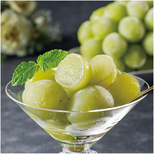 山形県産のシャインマスカットを、まるごと1房瞬間凍結しました。