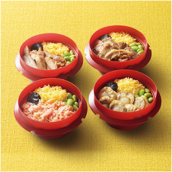 かに・ほたて・とり・ぶたを素材にふっくらと炊き上げた釜めしのセット。