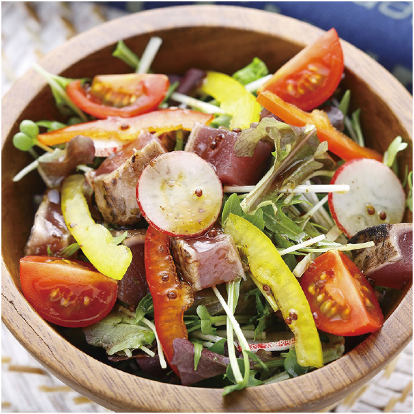 一本釣りで漁獲した鰹を土佐伝統の藁焼きでたたきにしました。