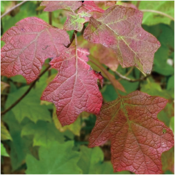 ライムがかった白い筒状の花穂を伸ばし、秋には美しい紅葉も楽しめます。