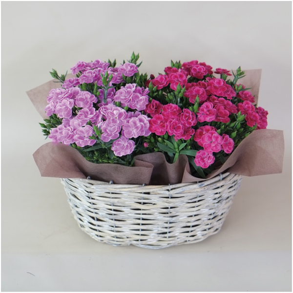 【母の日】日比谷花壇 カーネーション「スイーツ」2鉢バスケット(SUSTEE付)【485186】