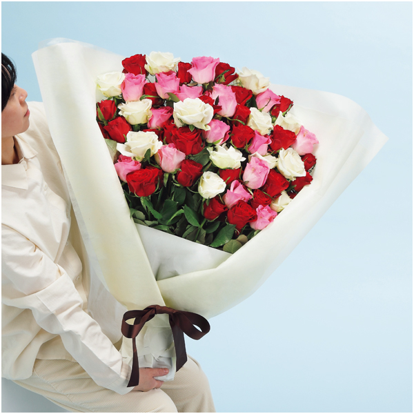 バラ(赤22、ピンク15、白13)、ラッピング、リボン、長さ約70cm