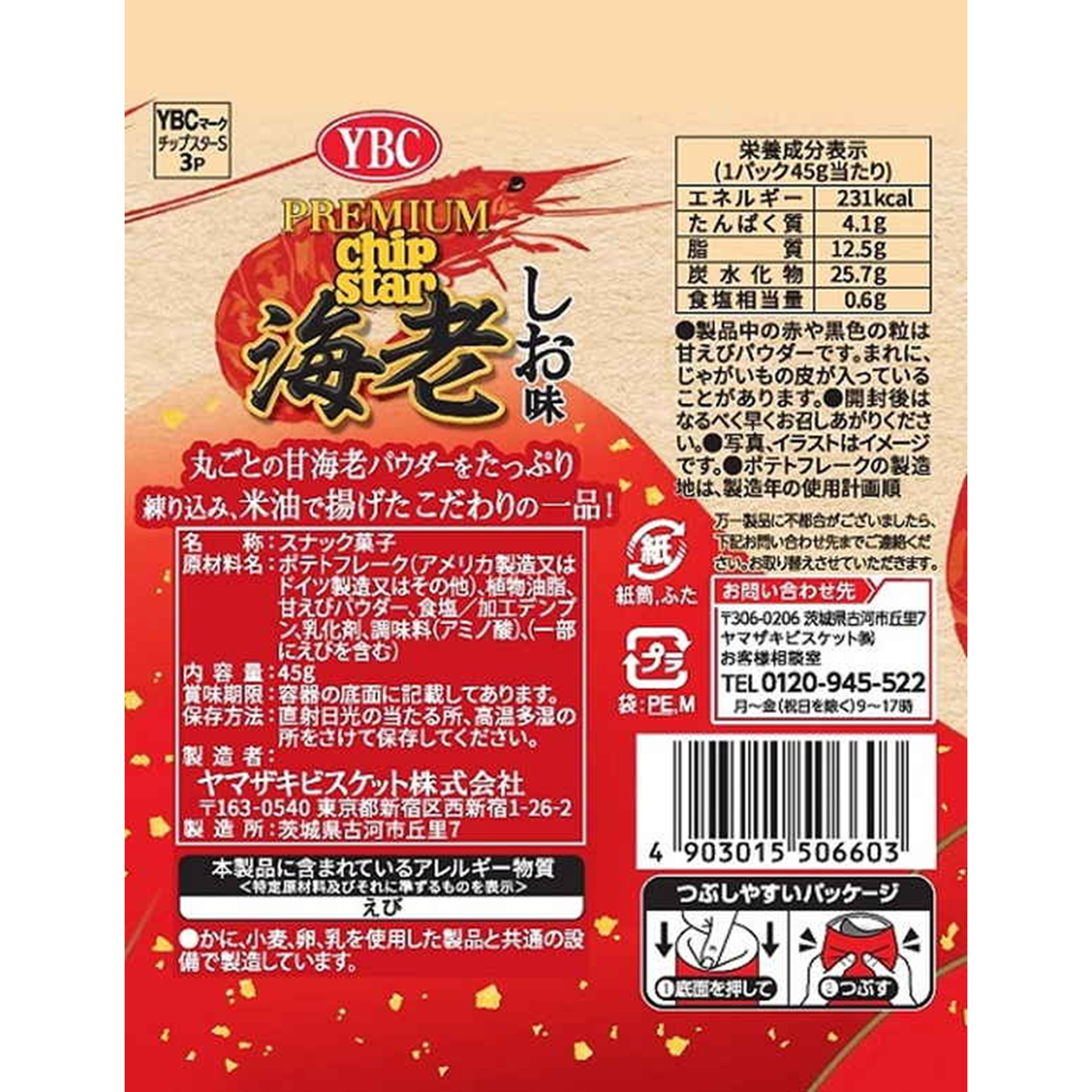 ヤマザキビスケット YBCチップスター 海老しお 45g (×8)|mvm-001-4903015506603-8