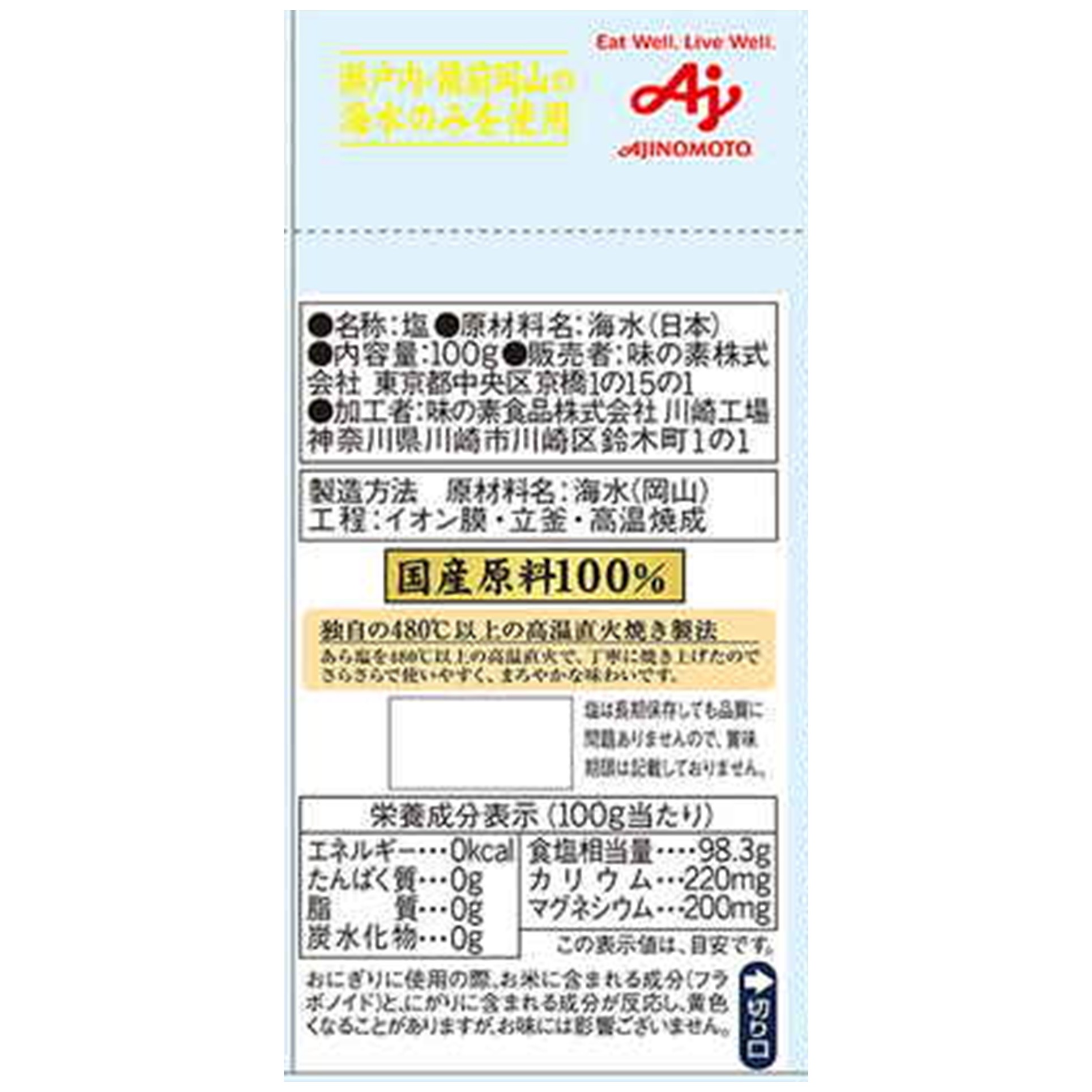 味の素 瀬戸のほんじお 焼き塩 100g (×10)|mvm-003-4901001319299-10