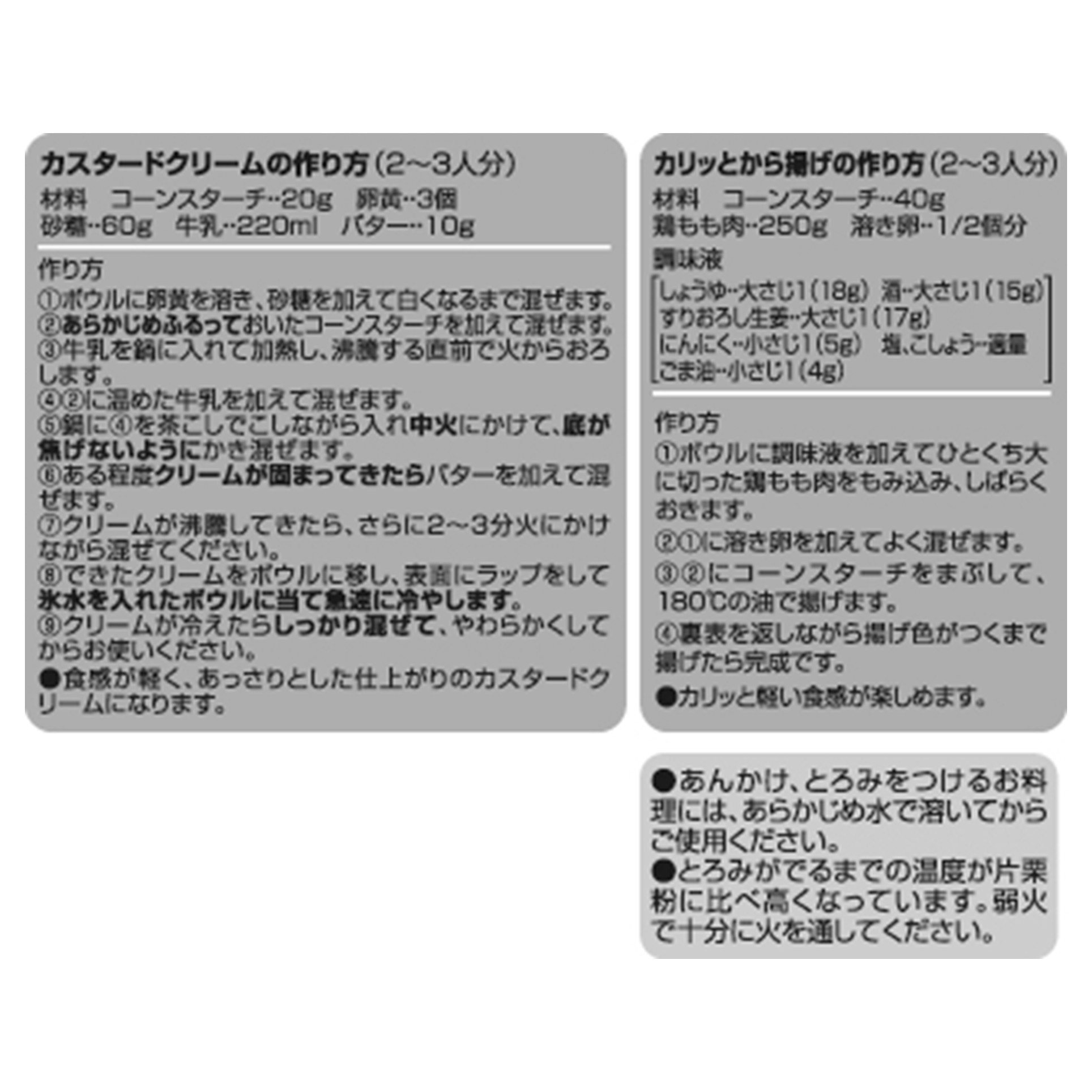 菓子作りや料理のとろみ付にお使い頂けます
